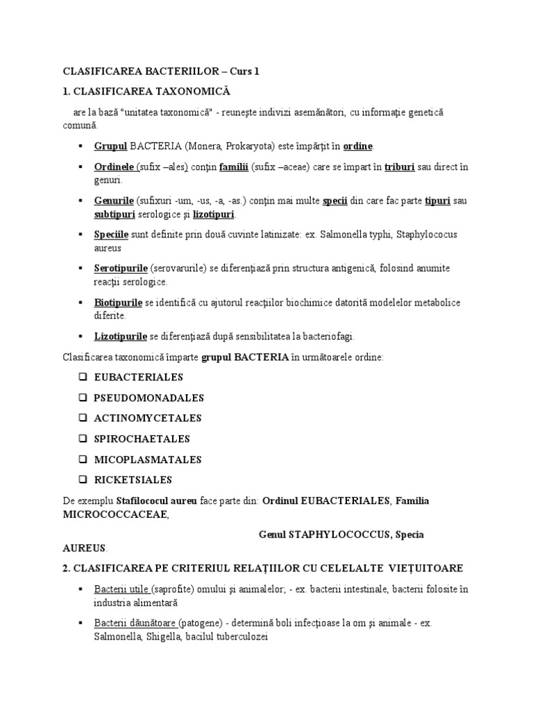 CLASIFICAREA BACTERIILOR – Curs 1
