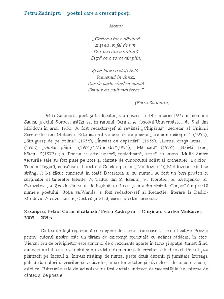 Petru Zadnipru – poetul care a crescut