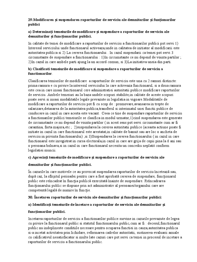 c) Apreciaţi temeiurile de modificare şi suspendare a raporturilor de serviciu ale