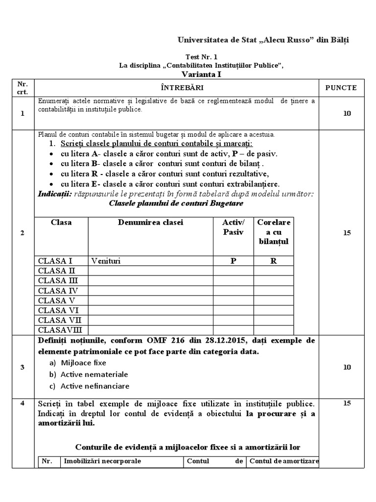 4 Scrieți în tabel exemple de mijloace fixe utilizate în instituțiile publice. 15