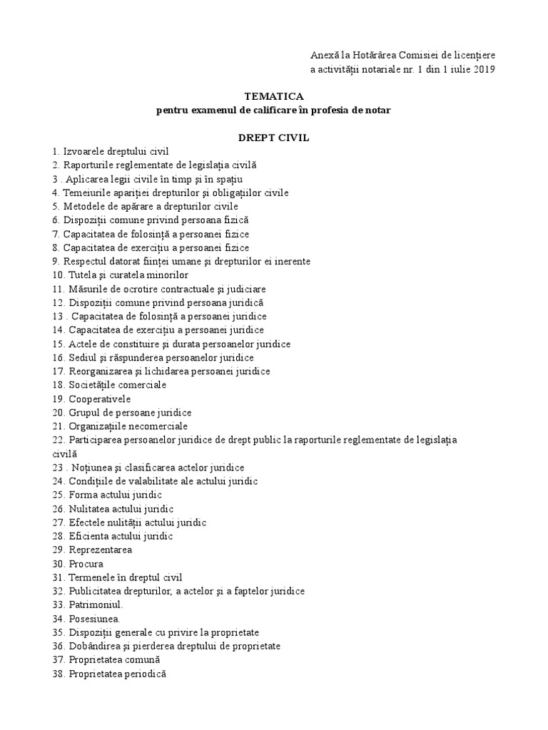 pentru examenul de calificare în profesia de notar