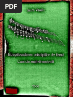 Introducere .. I. CONCEPTE FUNDAMENTALE I.1. Form muzical i gen muzical . I.1.1. Arhitecturi muzicale n timp i n afara timpului I.1.2. Importana sistemului tonal n evoluia formelor i genurilor muzicale ... I.1.3. Influena altor sisteme de organizare a sunetului asupra formelor i genurilor muzicale I.2. Morfologie muzical ... I.2.1. Elementele discursului muzical: celula, motivul, fraza, perioada I.2.2. Tehnici de prelucrare i dezvoltare a elementelor discursului muzical n funcie de parametrii sonori I.3. Categorii sintactice muzicale . I.3.1. Monodia, Polifonia, Omofonia, Heterofonia, alte categorii I.3.2. Categorii sintactice de sintez: Monodia acompaniat, Polifonie de omofonii, Polifonie de polifonii, etc. I.3.3. Interdependena dintre morfologia i sintaxa muzical ... I.3.4. Interdependena categorii sintactice/forme i genuri muzicale (forme monodice, polifonice, omofone, eterofone, genuri muzicale monodice, polifonice, omofone) .. II. FORME MUZICALE II.1. Forme omofone .. II.1.1. Forma de lied: liedul simplu (monopartit, bipartit simplu i cu mic repriz, tripartit, tripentapartit) II.1.2. Liedul compus (bipartit, tripartit, tripentapartit) .. II.1.3. Forme variaionale: Tema cu variaiuni. Tehnica de tip variaional. Rolul i structura temei, tipuri de tem, rolul i structura variaiunilor, clasificri, organizarea pe cicluri variaionale