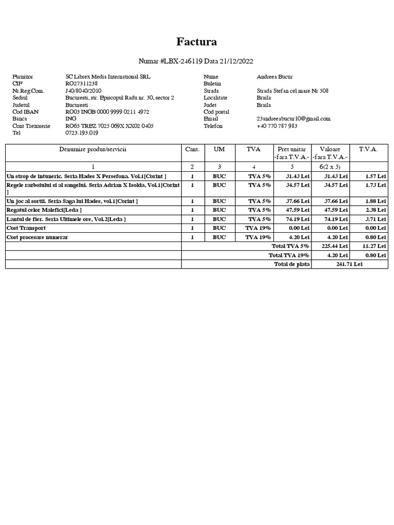 Furnizor SC Librex Media International SRL Nume Andreea Bucur