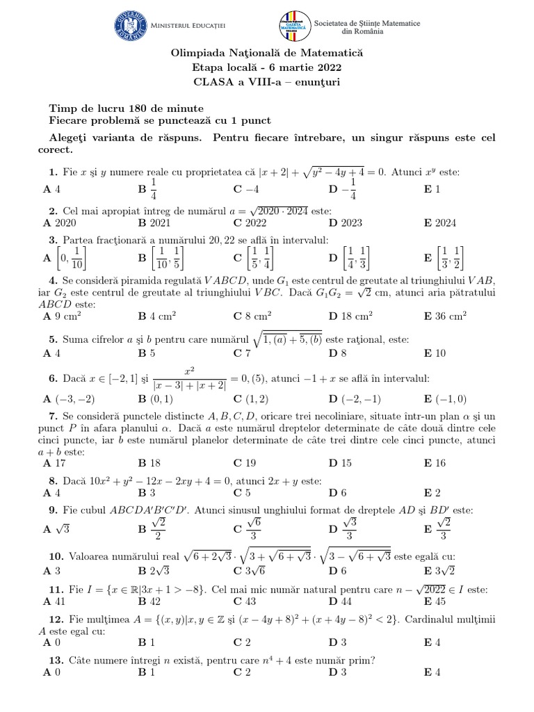 CLASA a VIII-a – enunţuri