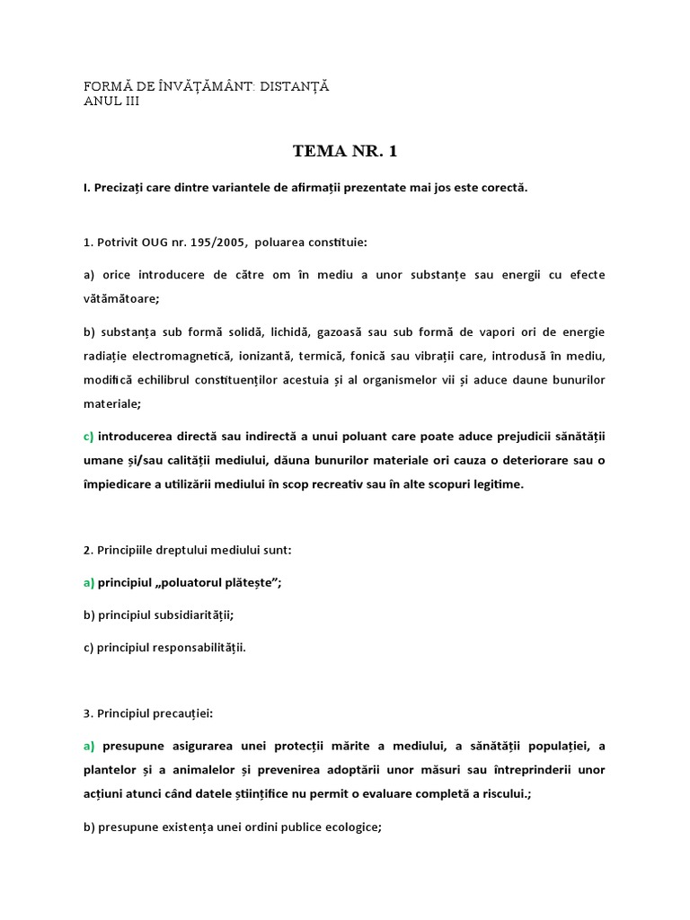 I. Precizaţi care dintre variantele de afirmaţii prezentate mai jos este corectă.