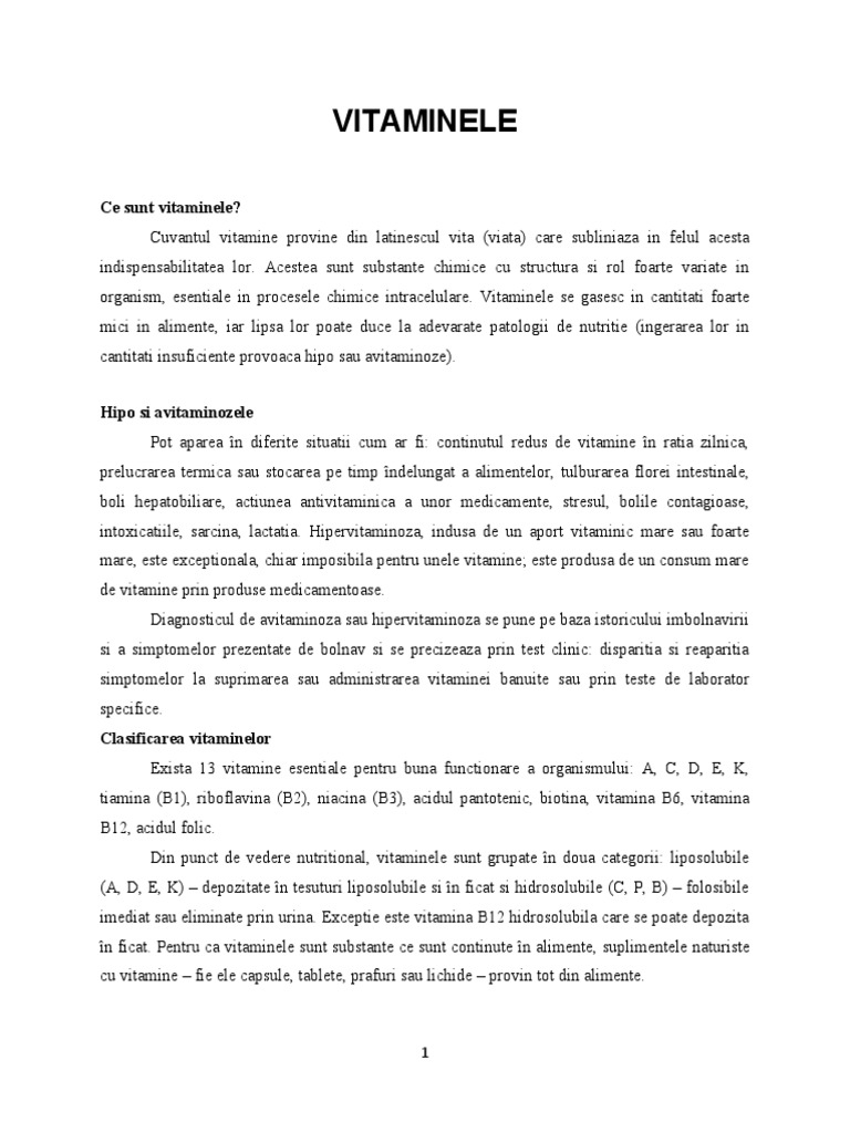 organism, esentiale in procesele chimice intracelulare. Vitaminele se gasesc in cantitati foarte
