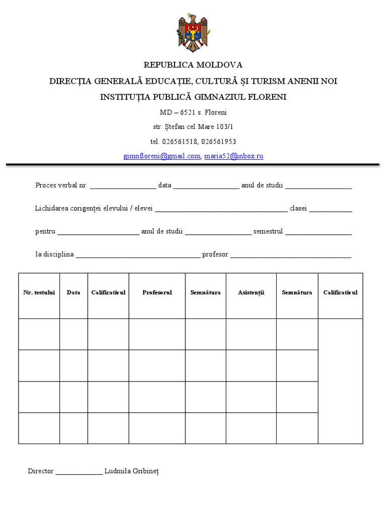 Proces verbal nr. _________________ data _________________ anul de studii _________________