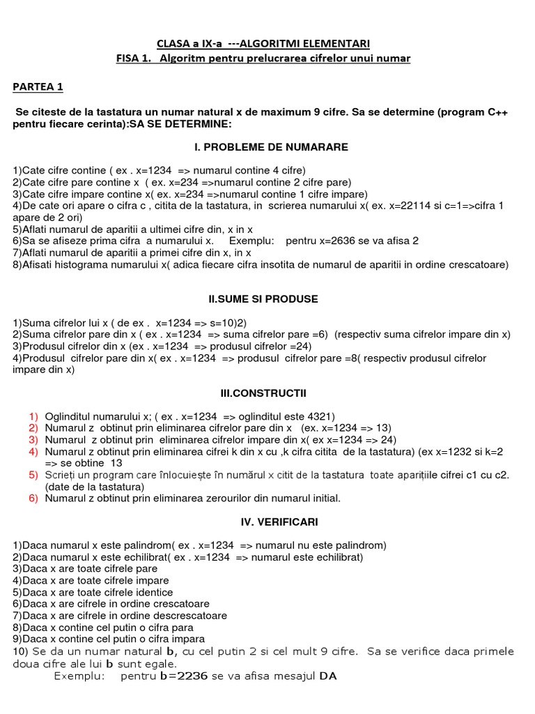 FISA 1. Algoritm pentru prelucrarea cifrelor unui numar