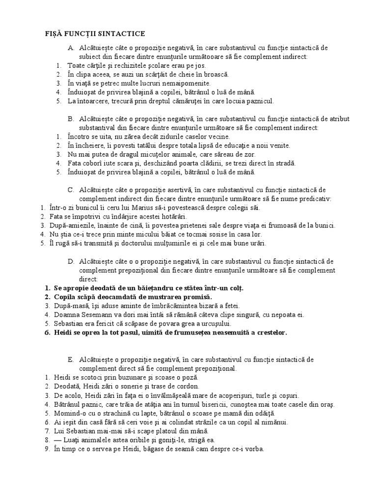 E. Alcătuiește o propoziție negativă, în care substantivul cu funcție sintactică de