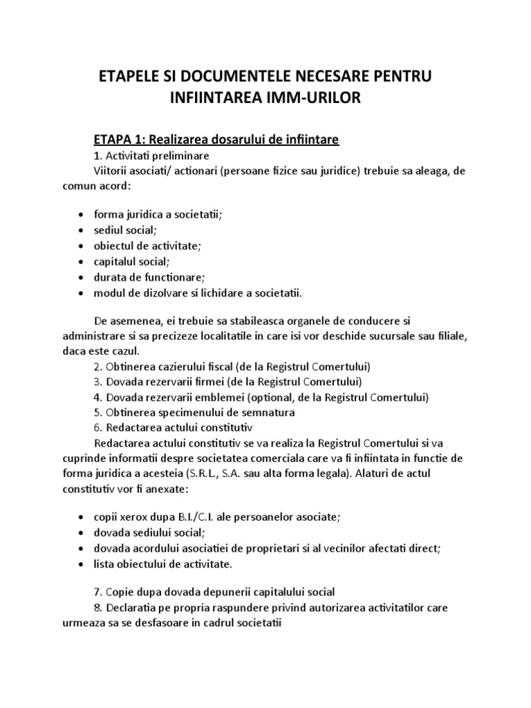 ETAPA 1: Realizarea dosarului de infiintare