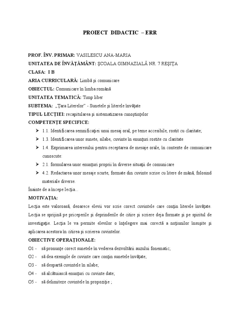 PROIECT DIDACTIC – ERR