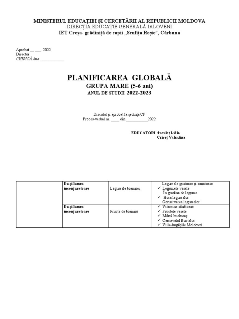 PLANIFICAREA GLOBALĂ
