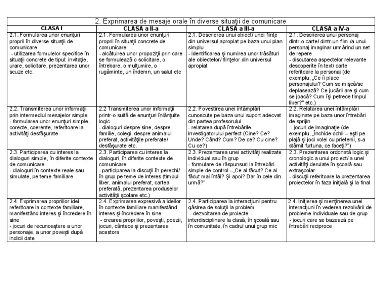 2.4. Exprimarea propriilor idei 2.4. Exprimarea expresivă a ideilor 2.4. Participarea la interacţiuni pentru 2.4. Iniţierea şi menţinerea unei