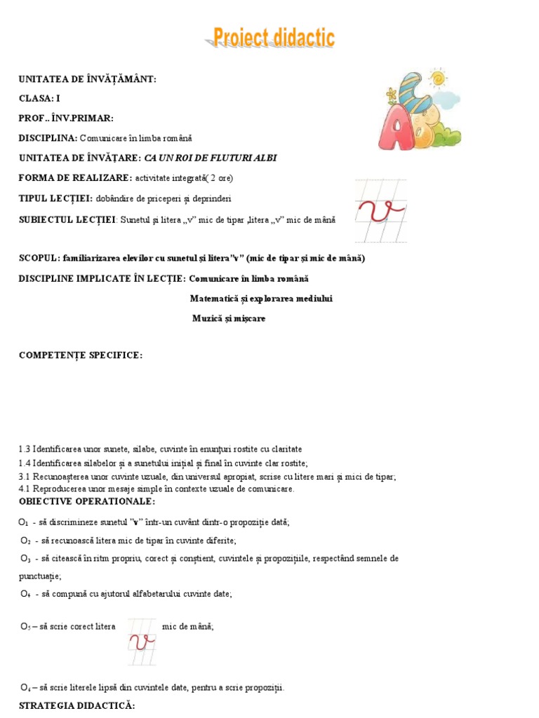 Anunțarea 1.1 recunoașteți litera ,,v”, să citiți și să scrieți cuvinte, propoziții