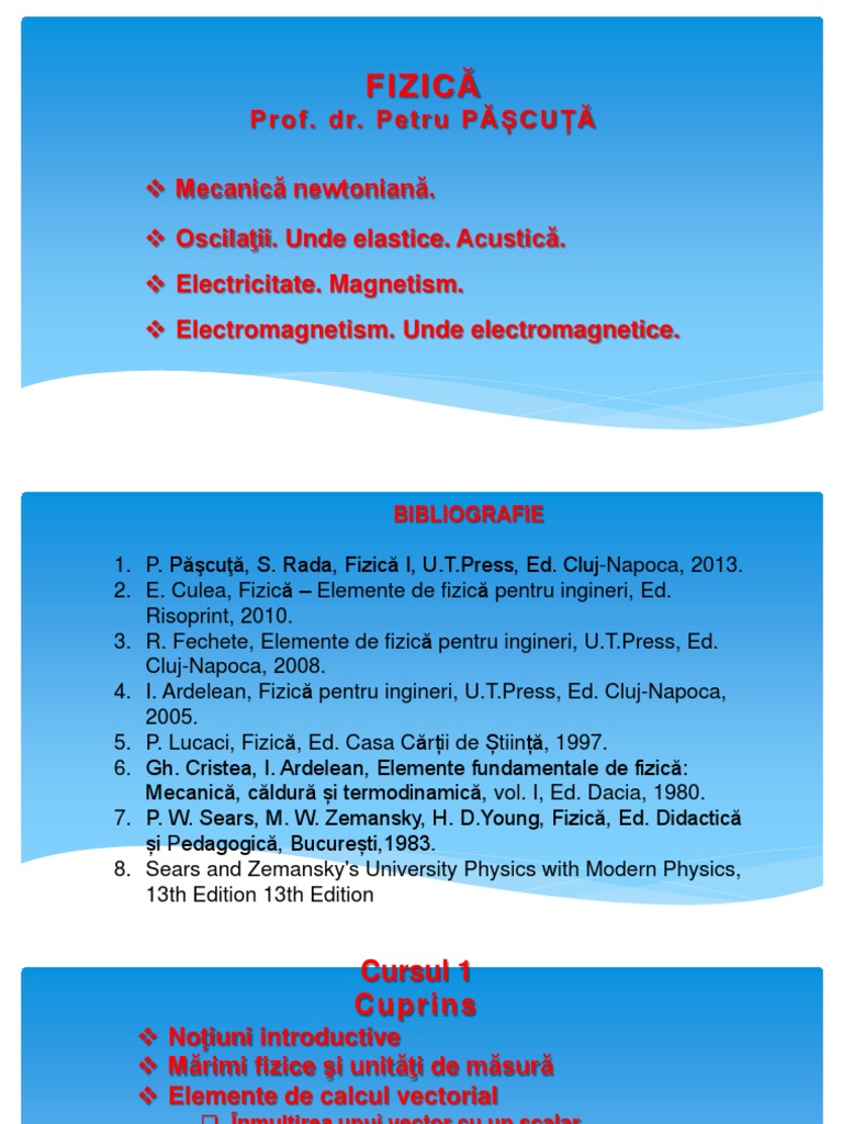 1. P. Păşcuţă, S. Rada, Fizică I, [Link], Ed. Cluj-Napoca, 2013.