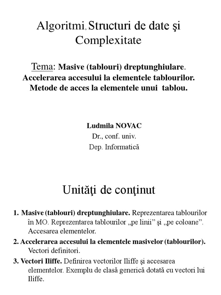 2. Accelerarea accesului la elementele masivelor (tablourilor).