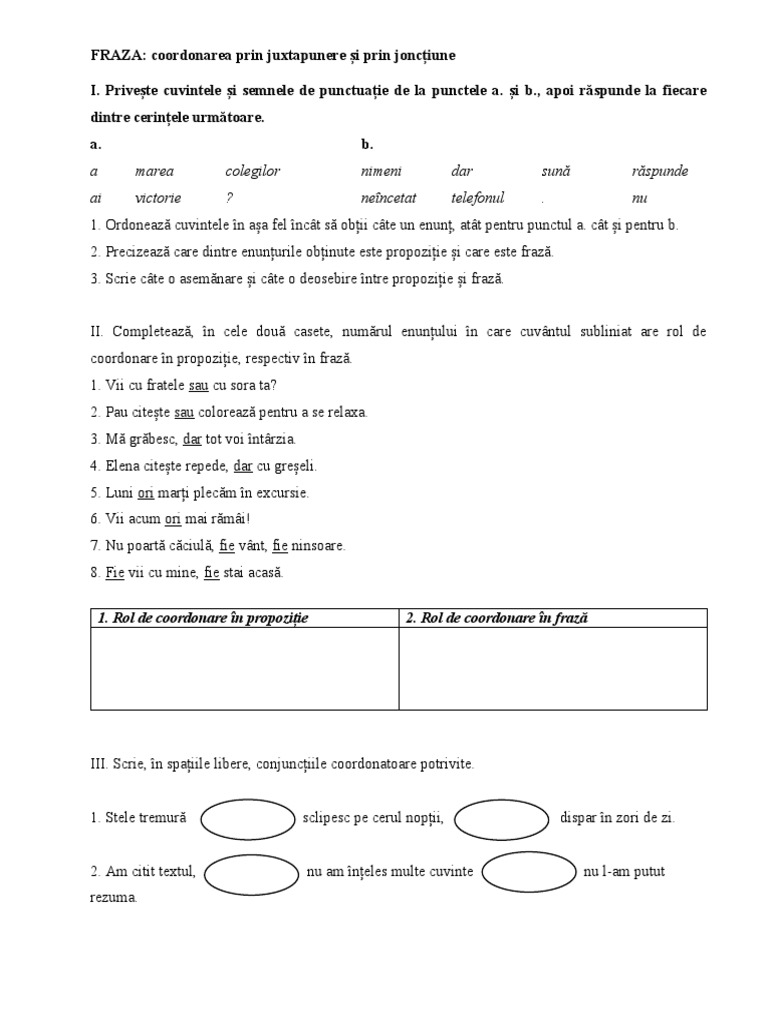 III. Scrie, în spațiile libere, conjuncțiile coordonatoare potrivite.