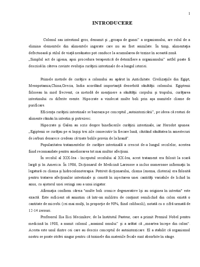 colonului și combaterea constipației era o practică frecventă și în trecut și ar trebui să devină și
