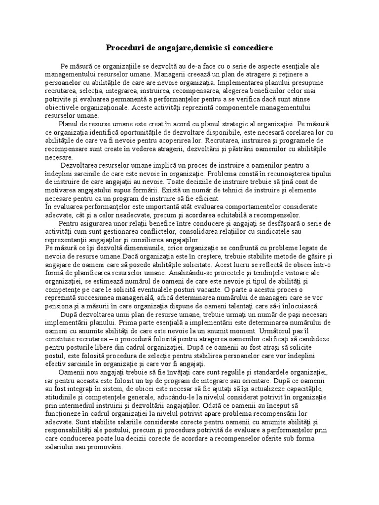 Proceduri de angajare,demisie si concediere
