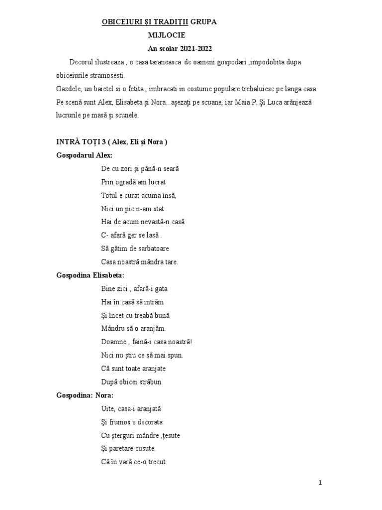 ACUM INTRĂ colindătorii și colindă ” Iată vin colindători ” și apoi ” Sculzți gazde
