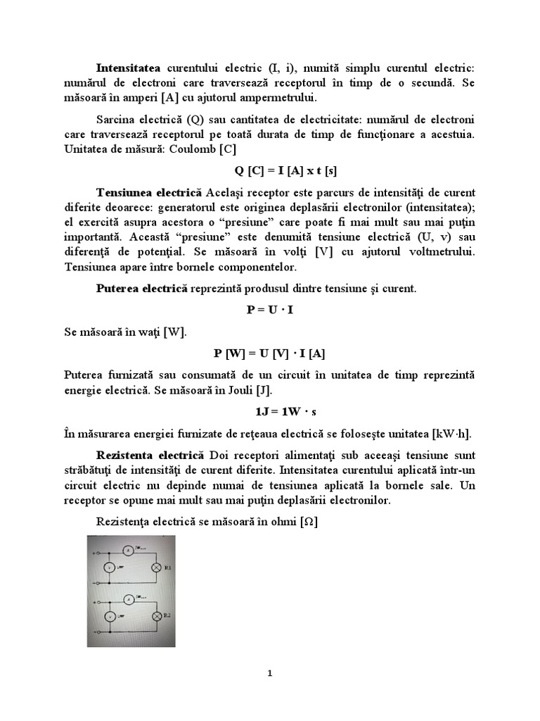 Rezistenta electrică Doi receptori alimentaţi sub aceeaşi tensiune sunt