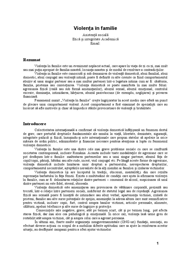 sau psihopatologice. Violența domestică în interiorul unei familii poate lua multe forme: abuzul
