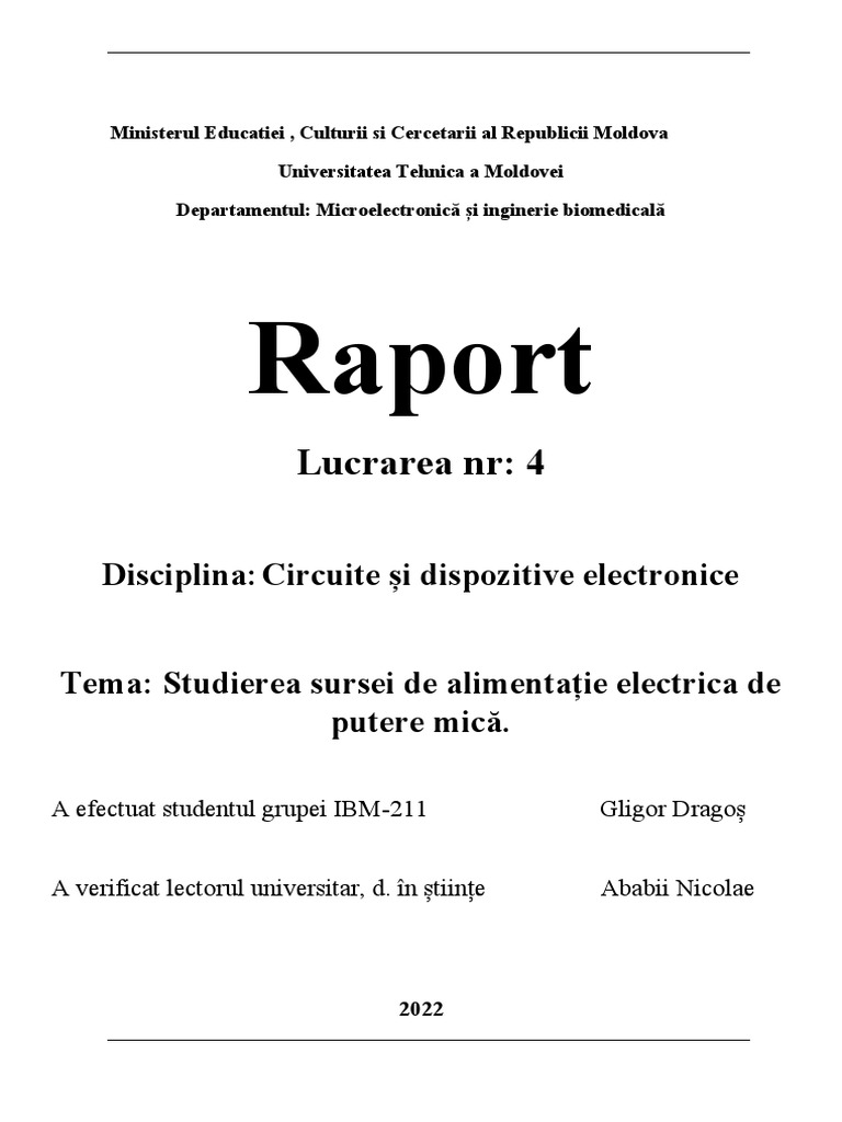Tema: Studierea sursei de alimentaţie electrică de putere mică