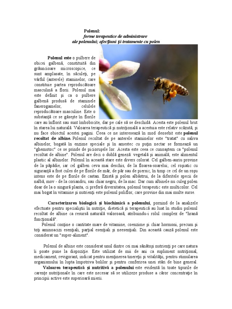 rezervaţi dacă este vorba să recomande polen pentru o afecţiune specifică. Acţiunea