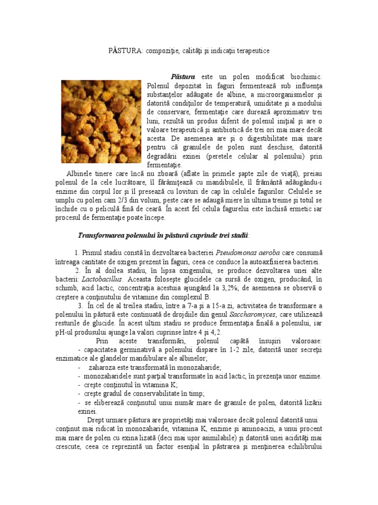 Drept urmare păstura are proprietăţi mai valoroase decât polenul datorită unui