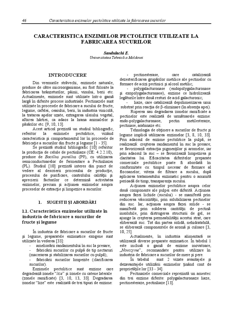 46 Caracteristica enzimelor pectolitice utilizate la fabricarea sucurilor