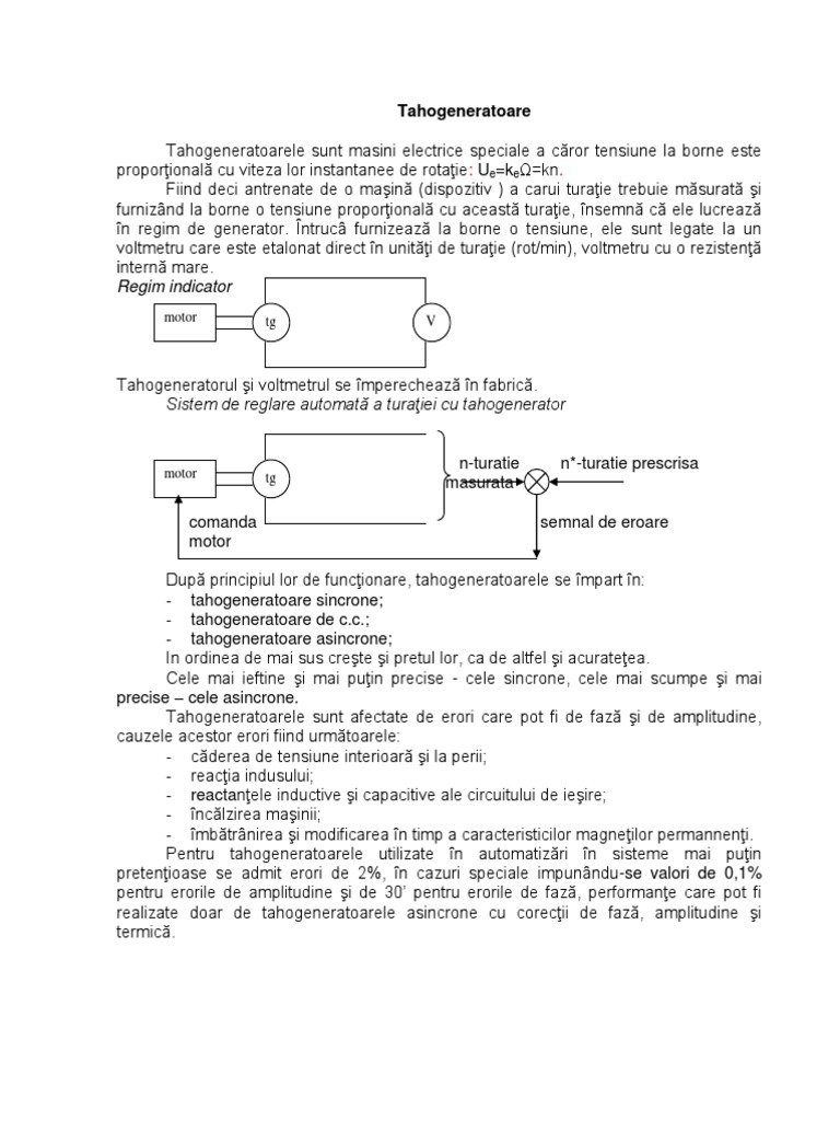 Tahogeneratoarele sunt masini electrice speciale a căror tensiune la borne este