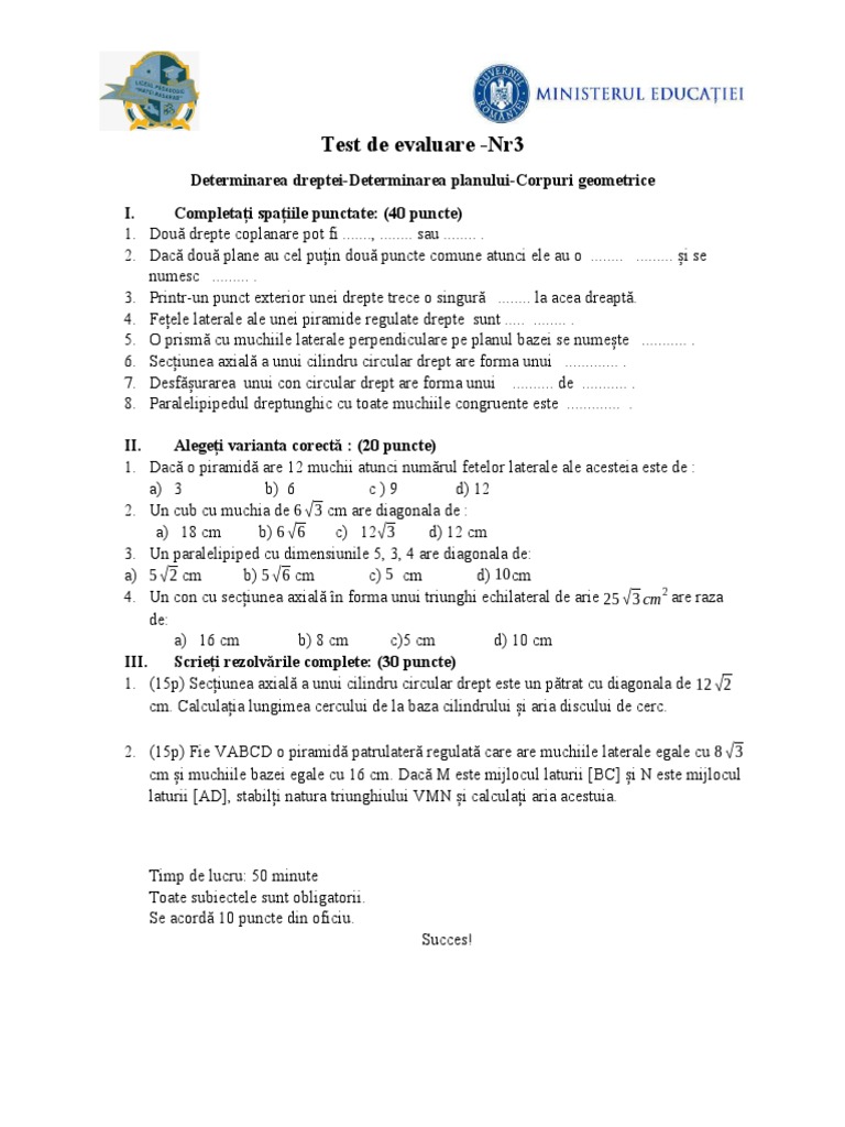 Test de evaluare -Nr3