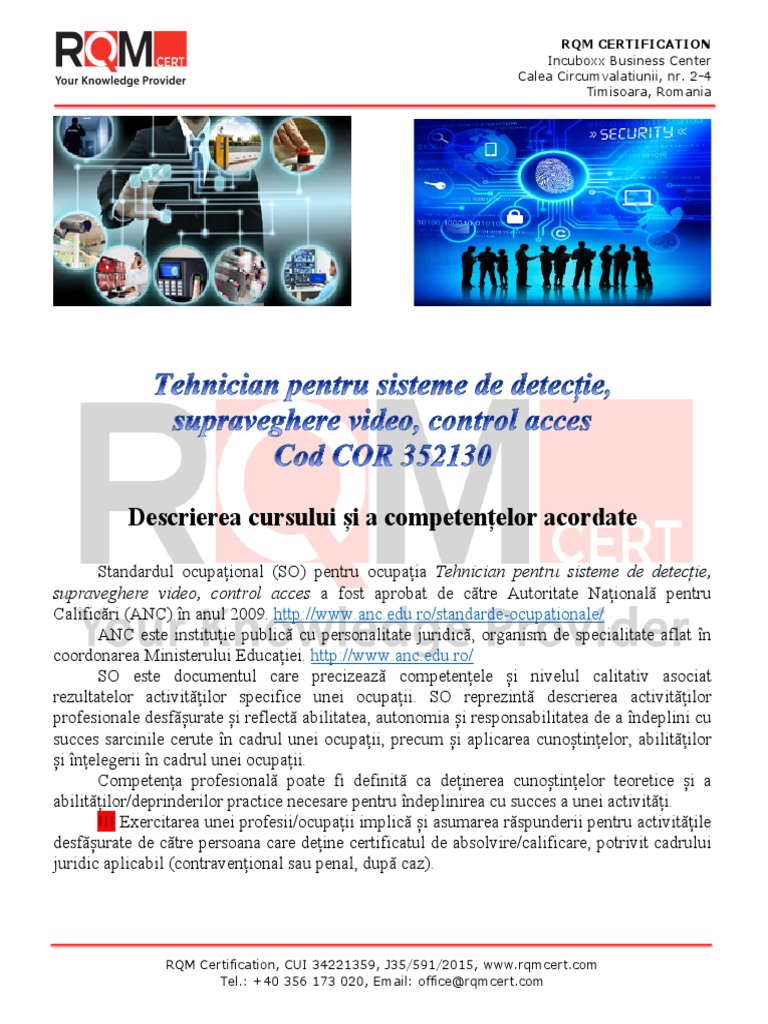 detecţie şi alarmare la efracţie, control acces, TVCI şi monitorizare”;