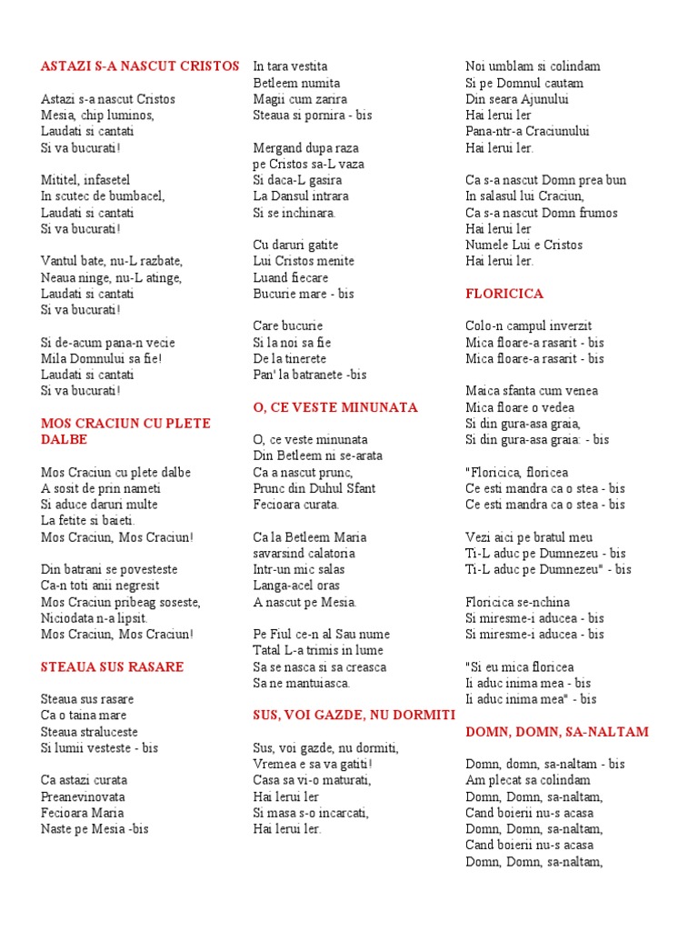 Aceasta zi prea sfintita Ne dati ori nu ne dati? Cand colindele se canta.