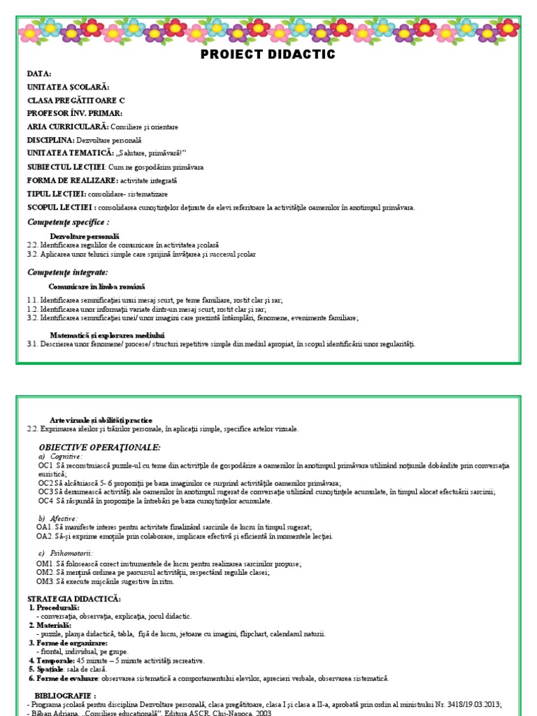 Activitate primăvara! solicitărilor Explicaţia Individual Observarea