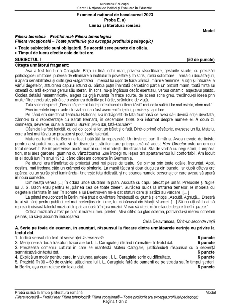 • Toate subiectele sunt obligatorii. Se acordă zece puncte din oficiu.