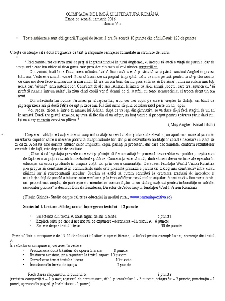 OLIMPIADA DE LIMBĂ ŞI LITERATURĂ ROMÂNĂ