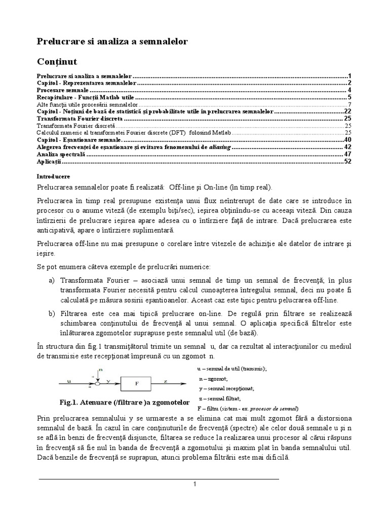 Prelucrare si analiza a semnalelor ........................................................................................................................1