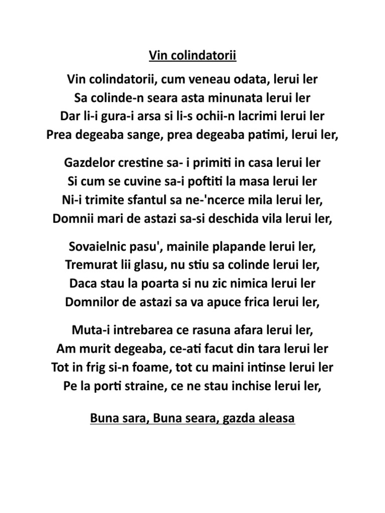 Sa colinde-n seara asta minunata lerui ler