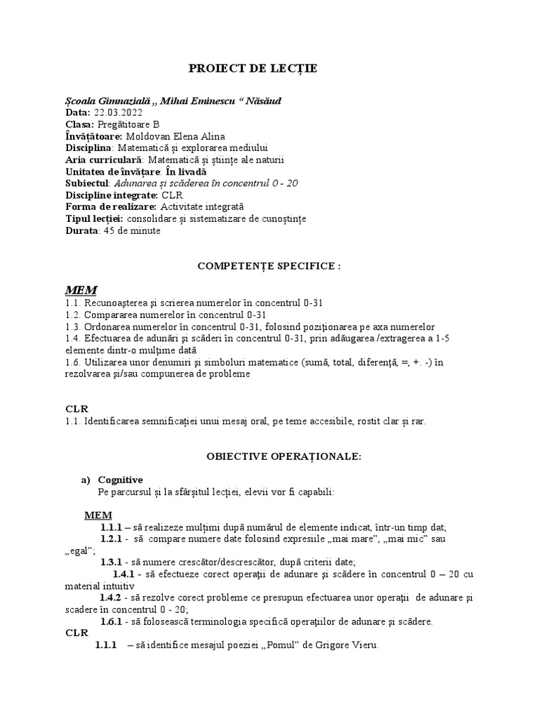 temei și a -20, vom face adunări și scăderi simple și ne atenție tema zilei conversația