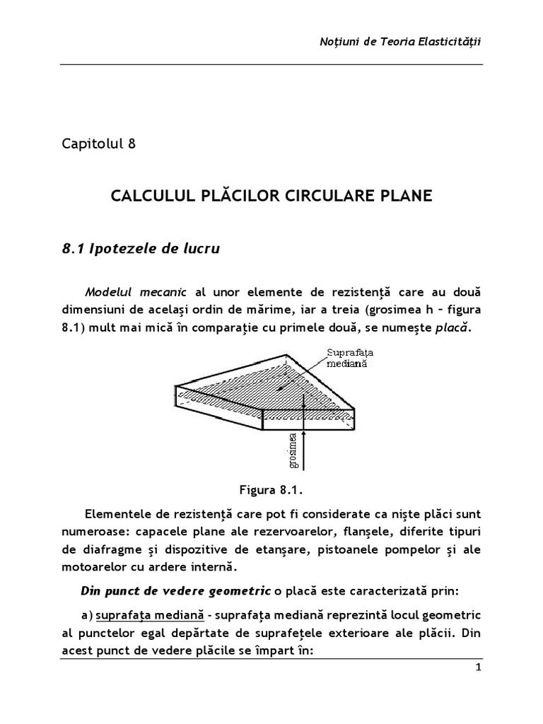 Ipotezele de calcul se prezintă pentru o placă circulară de grosime