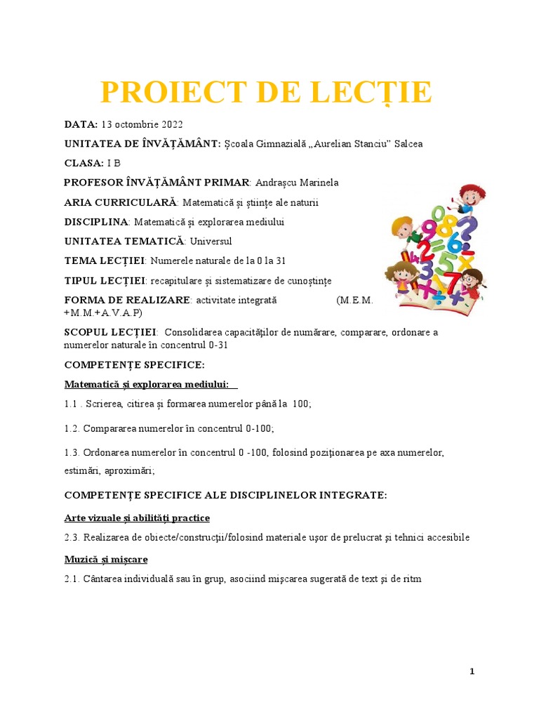 1.1 . Scrierea, citirea și formarea numerelor până la 100;