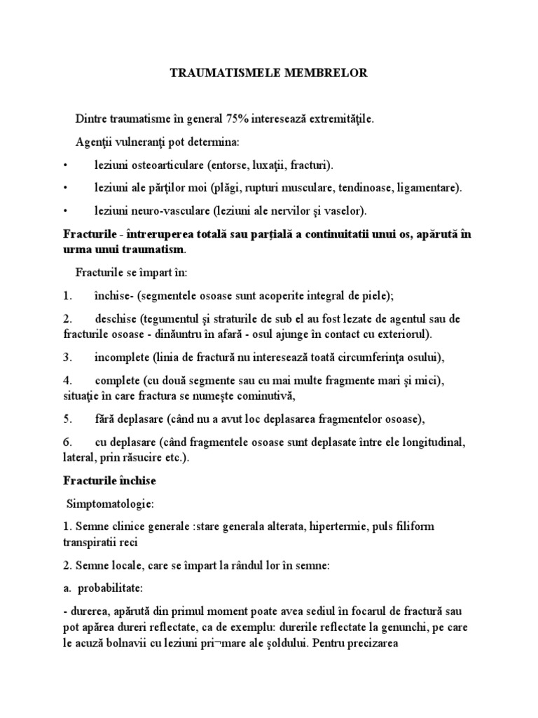 Fracturile - întreruperea totală sau parţială a continuitatii unui os, apărută în
