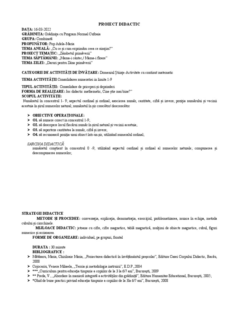 Mătăsaru, Maria, Chiriloaie Maria, ,,Proiectarea didactică în învăţământul preşcolar”, Editura Casei Corpului Didactic, Bacău,