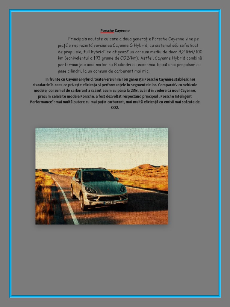 km (echivalentul a 193 grame de CO2/km). Astfel, Cayenne Hybrid combină