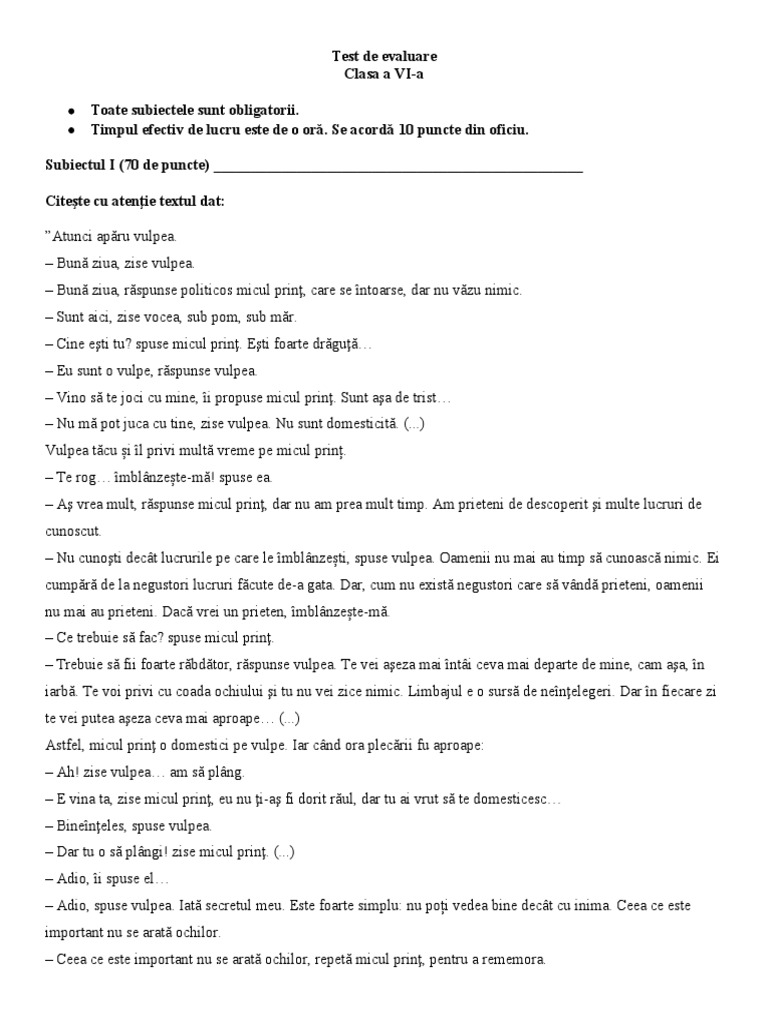Timpul efectiv de lucru este de o oră. Se acordă 10 puncte din oficiu.