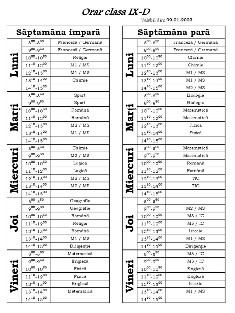 Orar clasa IX-D