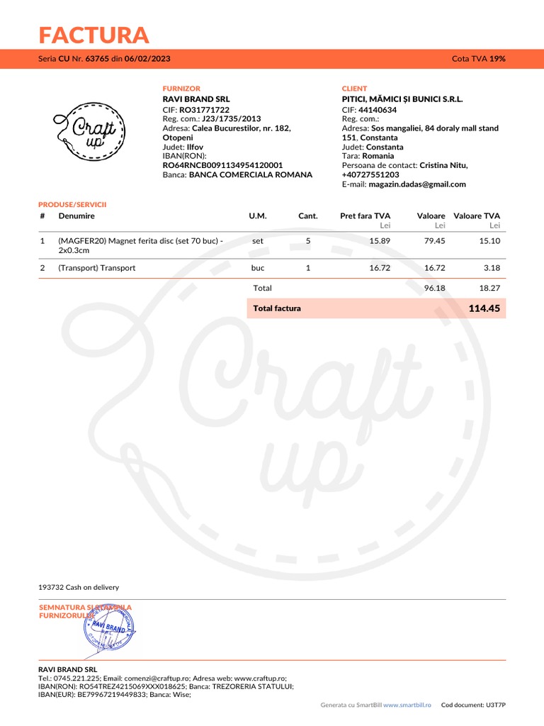 Generata cu SmartBill [Link] Cod document: U3T7P