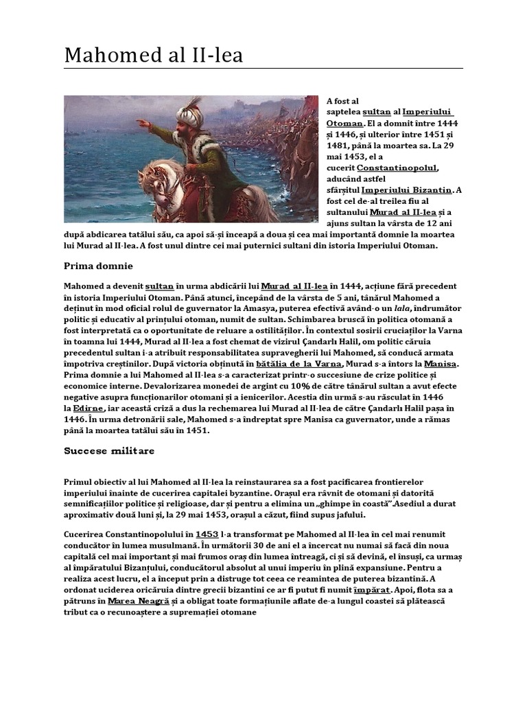 lui Murad al II-lea. A fost unul dintre cei mai puternici sultani din istoria Imperiului Otoman.