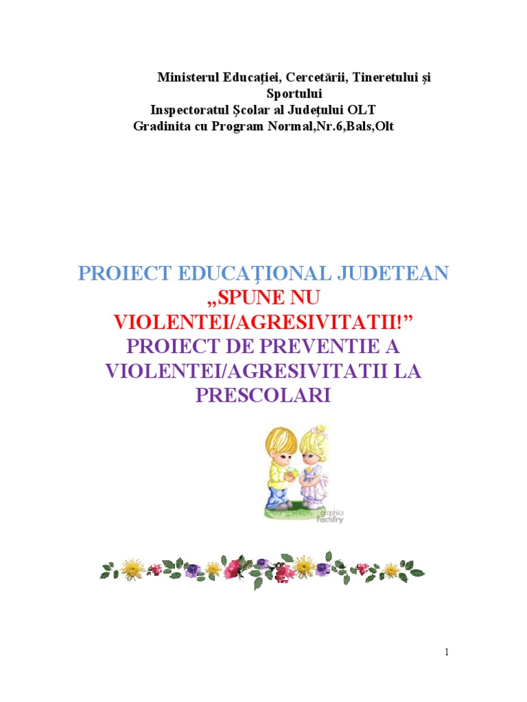 Proiect Educaţional Judetean: Spune Nu Violentei/Agresivitatii!"